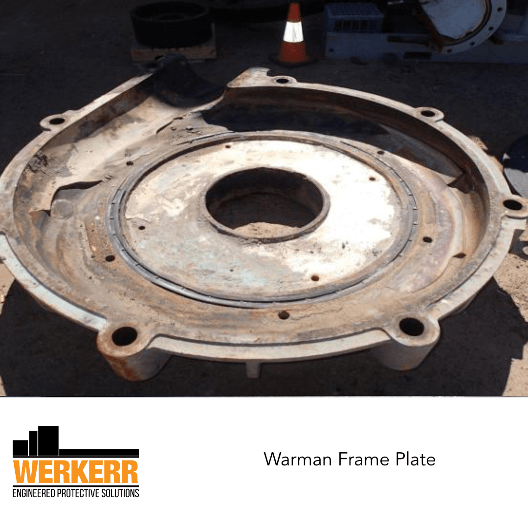 Werkerr specialise in the repair and lining of damaged pump volutes and associated parts. Using specialty moulds, Werkerr can repair and rebuild your warman pump casings, throat bushes and backing plates back to specification (usually at a fraction of the cost of full replacement).